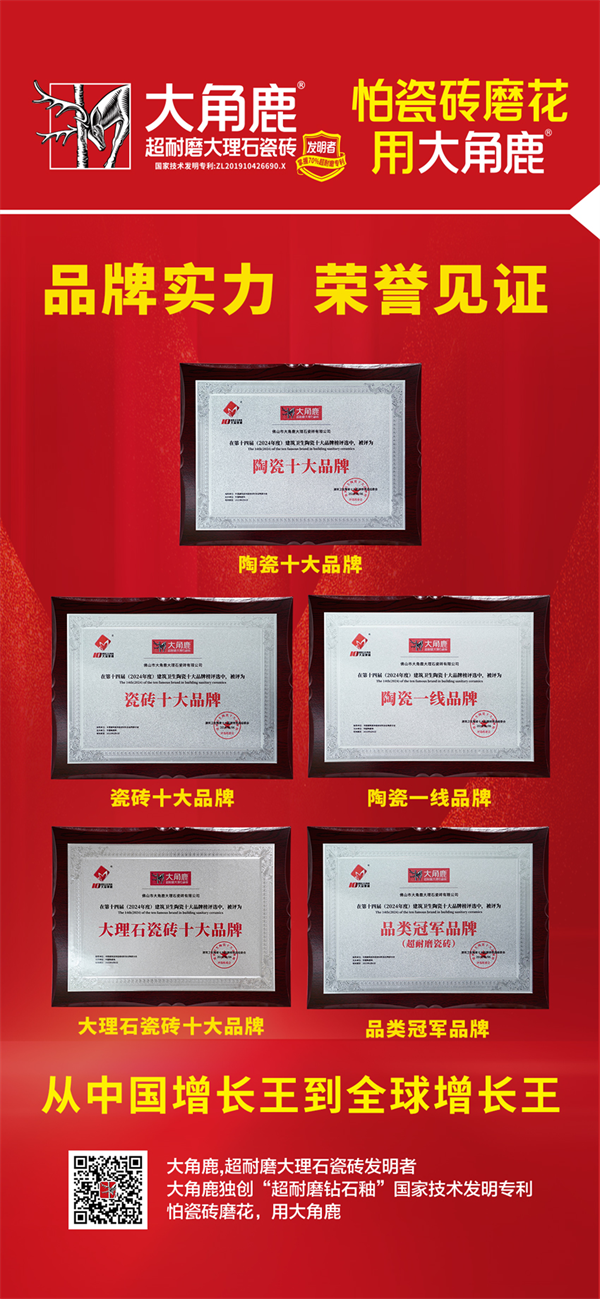 凭借引领全球的超耐磨技术和品牌影响力,中国瓷砖增长王油条视频荣获“陶瓷十大品牌”、“瓷砖十大品牌”、“陶瓷一线品牌”、“大理石瓷砖十大品牌”、“品类冠军品牌”五大重量级权威奖项,再次证明了油条视频在行业的领先地位。